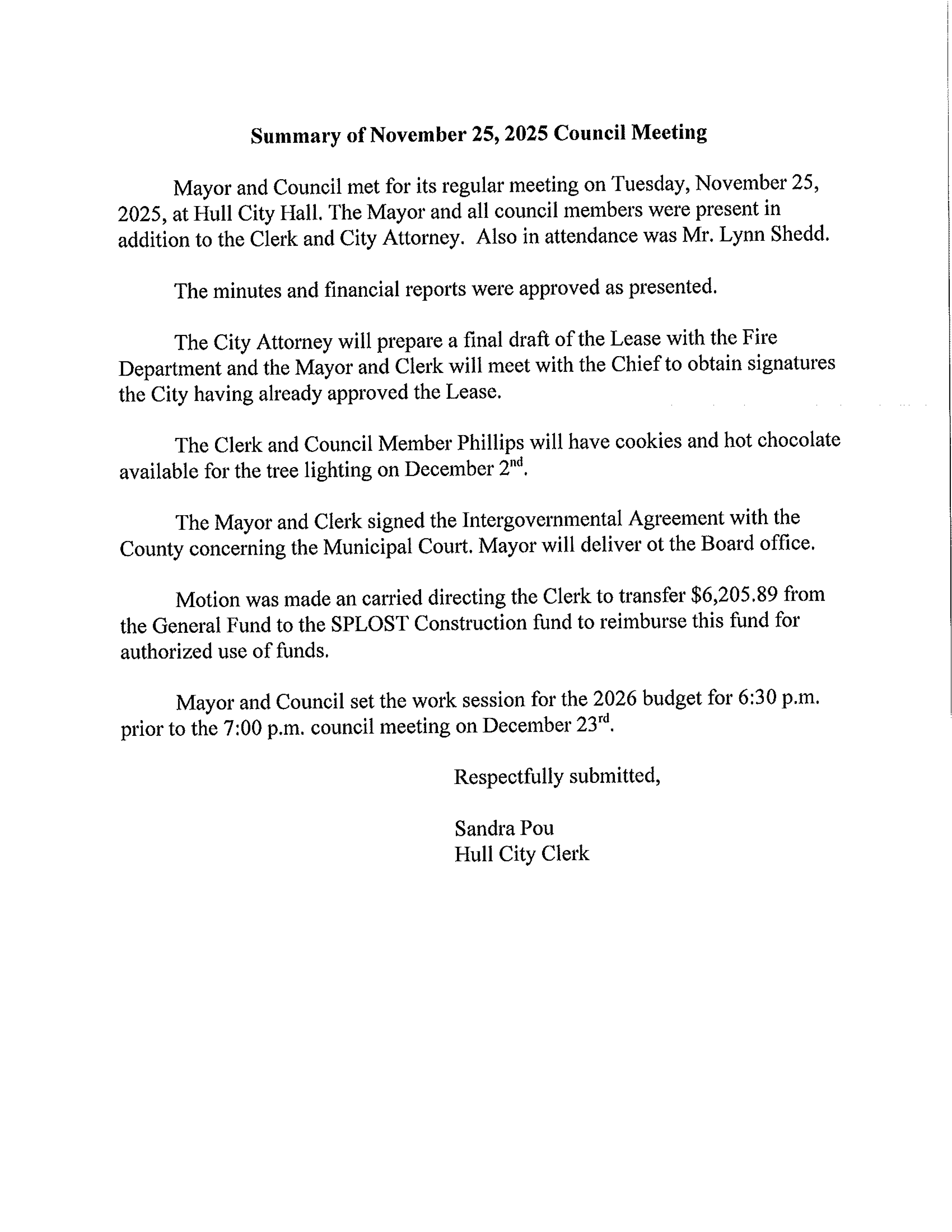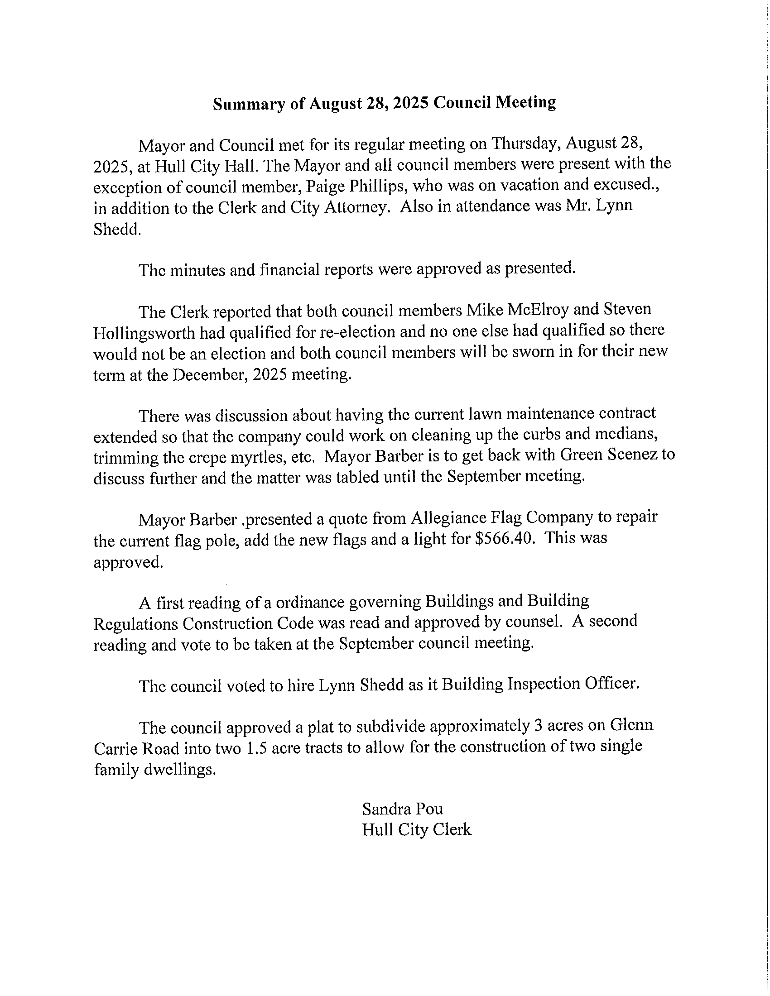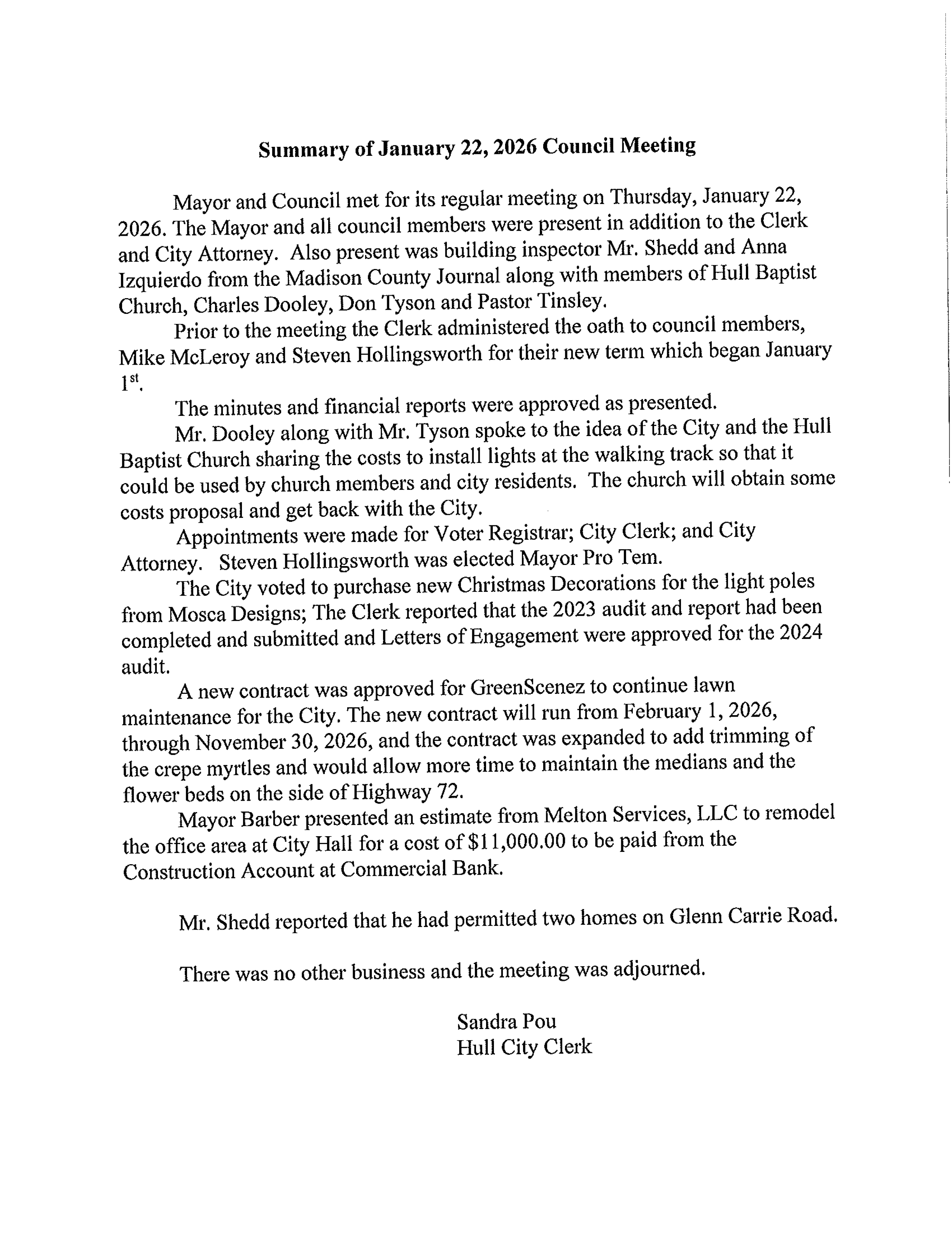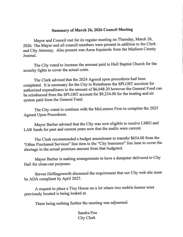 1326 Old Elberton Road PO Box 550 Hull, Georgia 30646